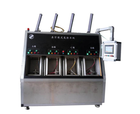 Secondo il principio di base di rilevamento delle perdite dell'elio, con l'elio come gas tracciante, il pezzo di lavoro viene posto nella camera a vuoto e riempito di elio,Poi attraverso il rilevatore di perdite di elio può determinare rapidamente e con precisione l'accuratezza della perdita del pezzo di lavoroIl sistema utilizza quattro camere a vuoto, l'operatore inserisce i pezzi di lavoro nelle camere a vuoto, collega l'interfaccia del pezzo di lavoro al connettore rapido.Dopo la chiusura della porta della camera di vuoto, il sistema può completare automaticamente il rilevamento delle perdite di grandi dimensioni e della resistenza, il vuoto, il riempimento di elio, il rilevamento delle perdite di finezza, il recupero dell'elio e altre procedure.L'intero ciclo di prova è veloce e di alta precisione.